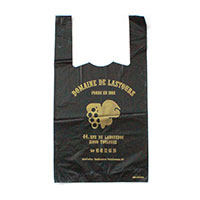 Sacs plastiques, polyéthylène HD ou BD, oxo-dégradable à partir de 10 microns, poignées découpées simples, renforcées ou rapportées ou anses souples.